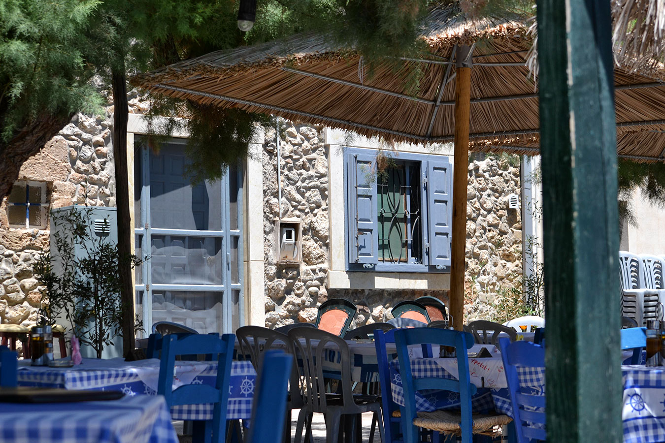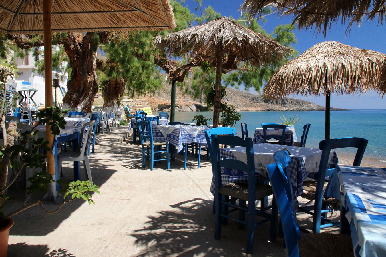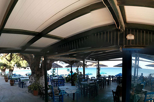 Here, next to the sea, you will find us ready to serve you from early in the morning to enjoy your breakfast or coffee and as the day rolls we serve you refreshments or fresh juice and for the older people a cold beer or ouzo with chosen titbits.