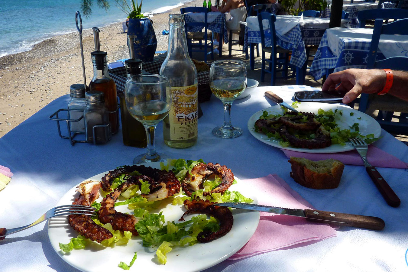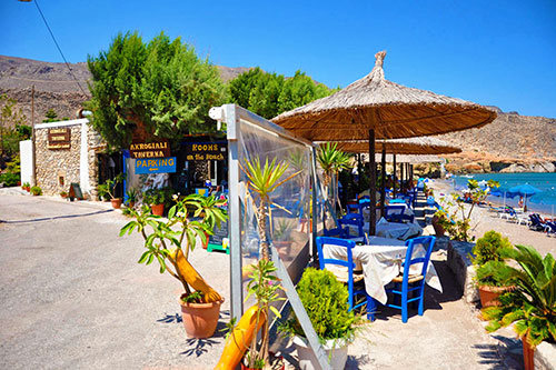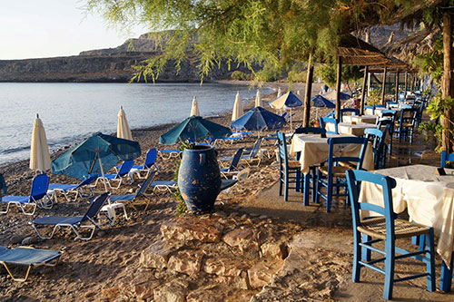 Superb location, traditional Cretan cuisine, very generous portions, friendly staff, just on the beach, you can use their sunbeds for free: what else?