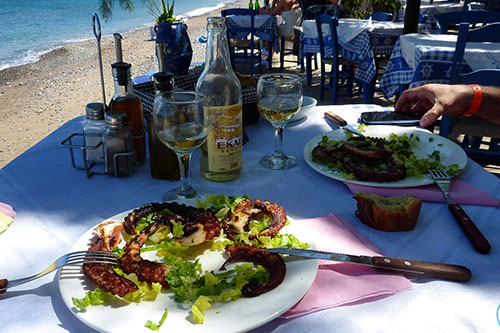 They give big importance to the quality and to all the materials that they use, taking into consideration always the local production and chastity. The oil is from the olive trees of Nikos, the vegetables from the farmers of the region as well as the meet from cattle-breeders of the region. As long as the fresh fish, it is daily provided by the captains Manolis, Giorgos and Kostas that is given to us straight from their caiques.