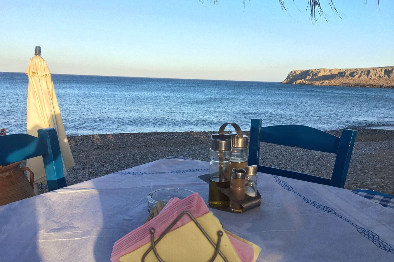 Superb location, traditional Cretan cuisine, very generous portions, friendly staff, just on the beach, you can use their sunbeds for free: what else?